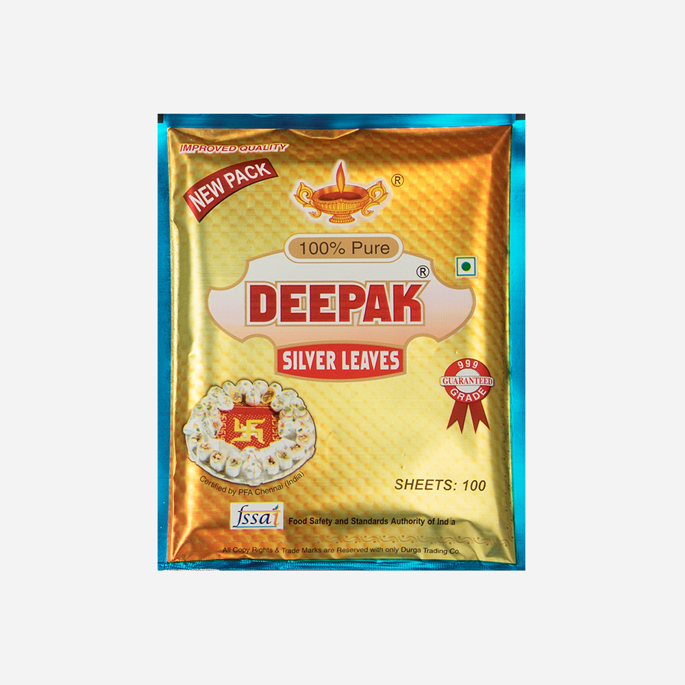 Vark, also called varak (also silver leaf), is super fine filigree foil sheet of pure metals, used to decorate south asian sweets and food. Pure edible silver foils have traditionally been a very popular material for the decorations of special-occasion desserts, confectioneries, nuts and many other dishes. Apart from being a food decorative, Deepak silver leaves are also attributed for their medicinal properties.