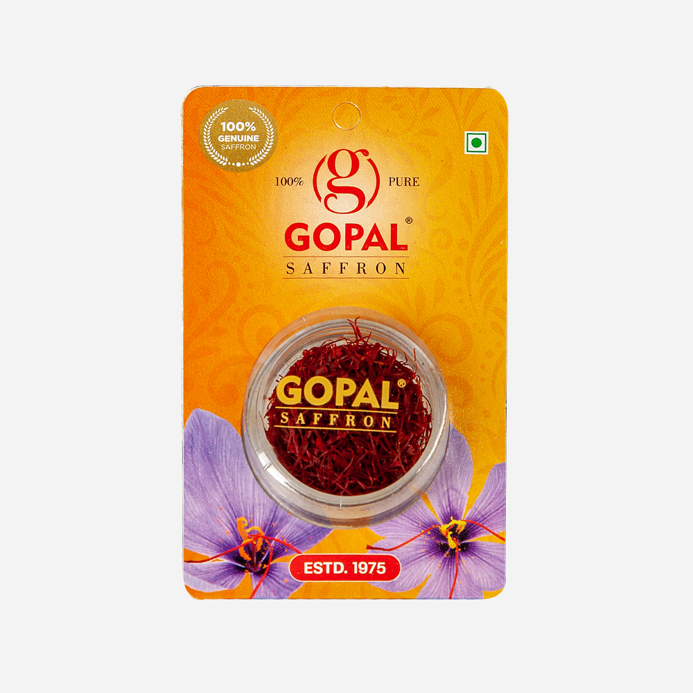 Indulge in the purity of the all natural, certified and original Kashmiri saffron with our freshly picked strands. This beautiful pack contains 1 gram of 100% Pure Gopal Brand Saffron.